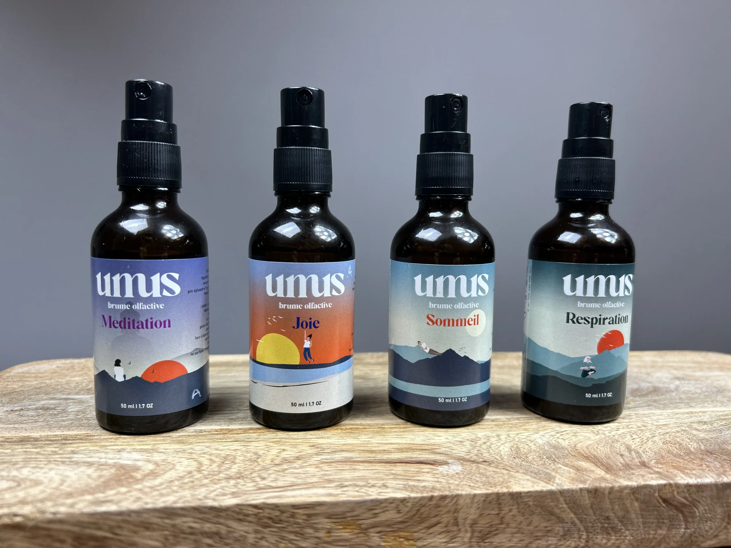 Huiles essentielles biologiques de Pin Sylvestre, Epinette Noire, Encens Oliban, eau florale menthe poivrée biologique, alcool de betterave