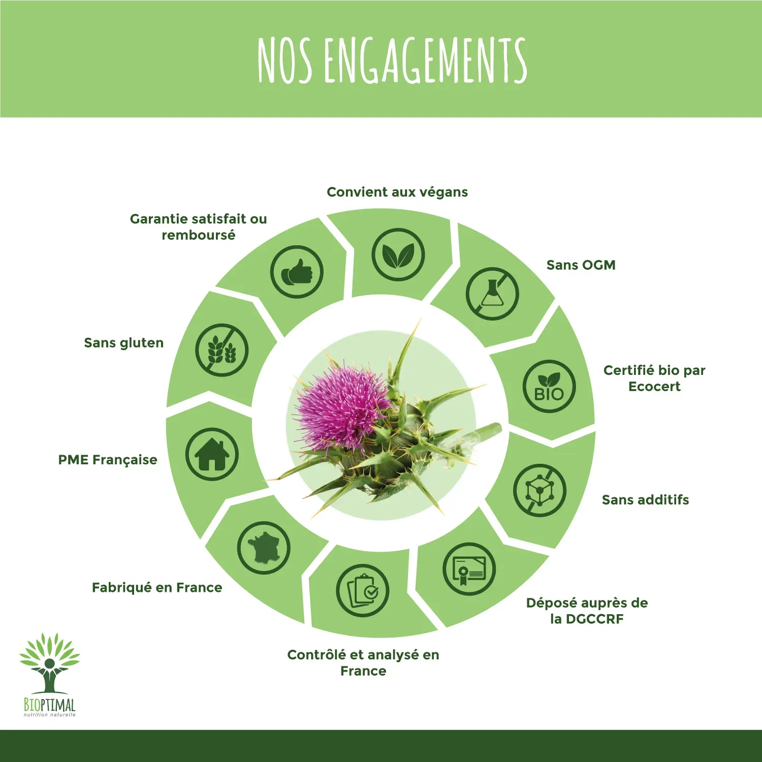 ⭐🔍 QUALITÉ FRANÇAISE = SECURITÉ : Nous fabriquons nos compléments alimentaires en France, nous avons fait le choix d’encapsuler nos chardon-marie bio en gélules végétales et non en comprimés pour ne pas intégrer de substances controversées tel que le dextrose, le talc, le stéarate ou le carbonate de magnésium. Nos produits sont garantis sans additifs, ni ogm, ni pesticides, ni gluten, ni gélatine animale. Ils sont contrôlés en France et certifiés agriculture biologique, HACCP + et Afnor.