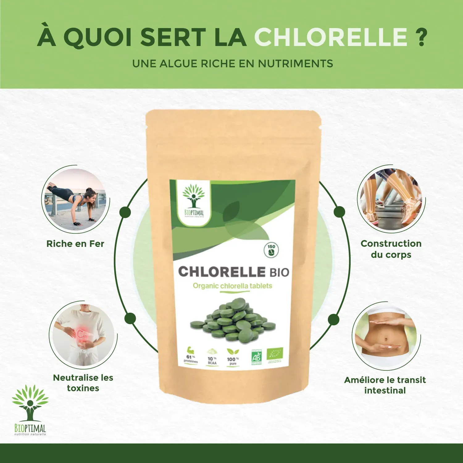 Complément Alimentaire Bio 100% Poudre “Chlorelle” 150 Comprimés