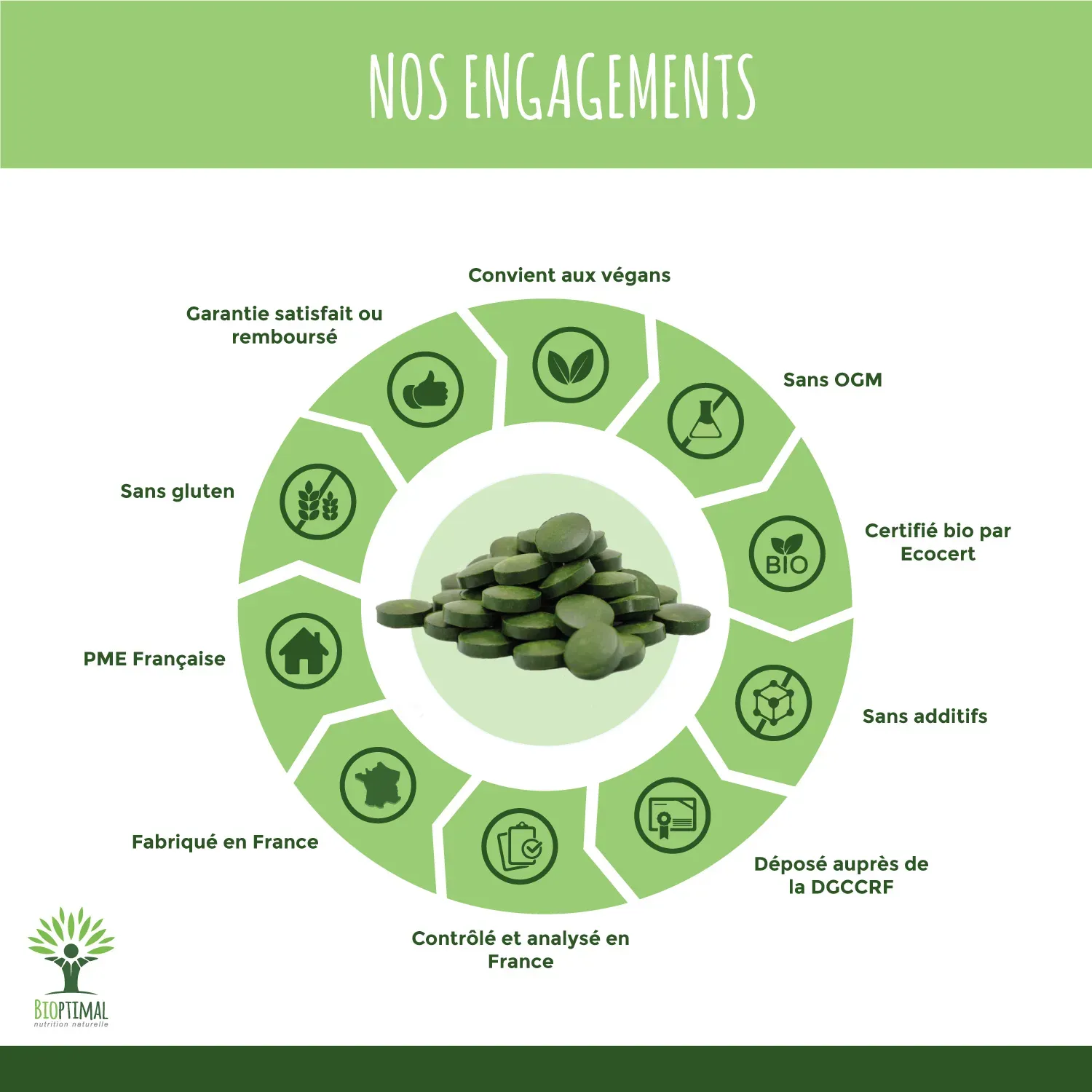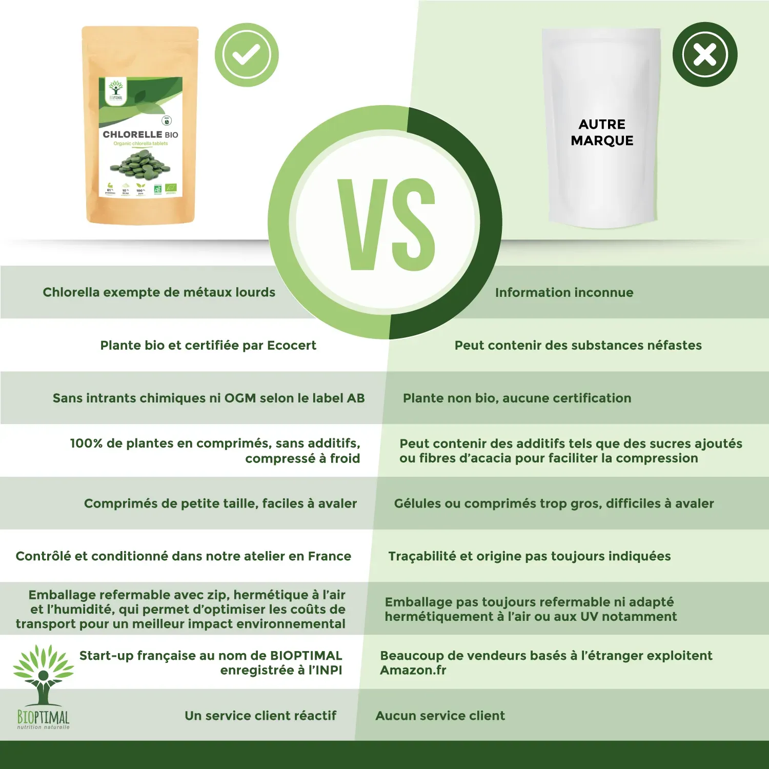 ⭐🔍 QUALITÉ PREMIUM + SECURITÉ : Nous avons sélectionné une chlorelle d’une excellente qualité nutritionnelle, que nous conditionnons en sachet refermable. Cultivée en bassins fermés avec une eau pure, en Inde au Tamil Nadu, elle est compactée à froid juste après récolte, sans excipient. Notre Chlorelle est garantie sans additifs, ni métaux lourds, ni ogm, ni pesticides, ni gluten, elle est contrôlée dans notre atelier familial en France et est certifiée agriculture biologique, HACCP + et Afnor.