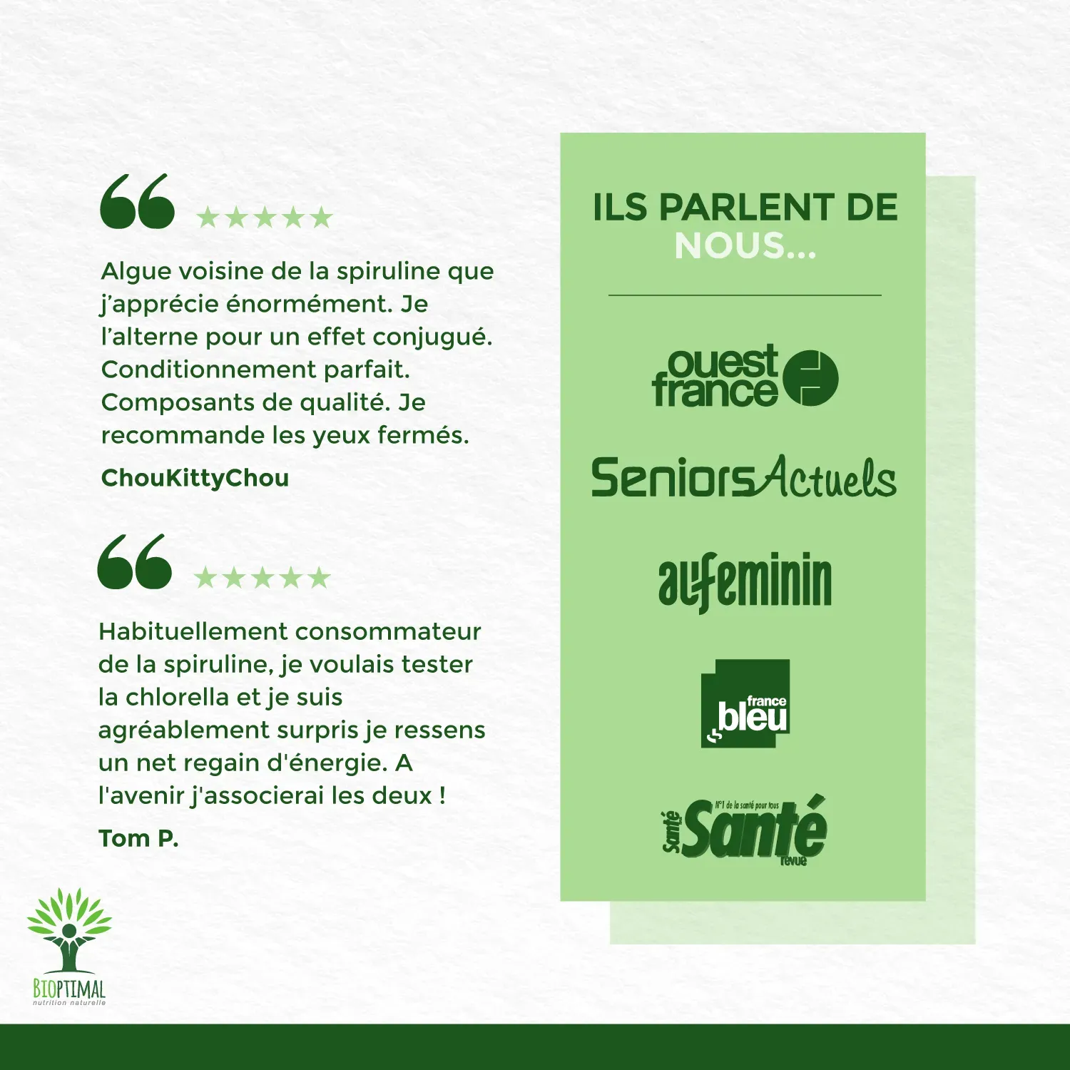 👍👪 POUR TOUTE LA FAMILLE : L’avantage de cette micro algue est que tout le monde peut la consommer. Papy et Mamie renforceront leur défenses naturelles notamment l’Hiver. Les sportifs bénéficieront d’une meilleure oxygénation et récupération musculaire grâce au fer et aux protéines. Les Végétaliens y trouveront une source importante de B12 assimilable! Notre Superaliment s’adresse vraiment à tout le monde, il n’y a pas de contre-indication, vous pouvez la consommer sans danger.
