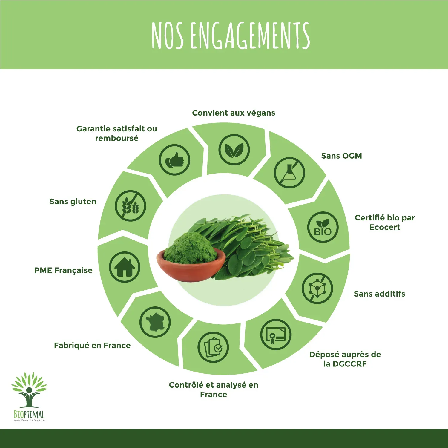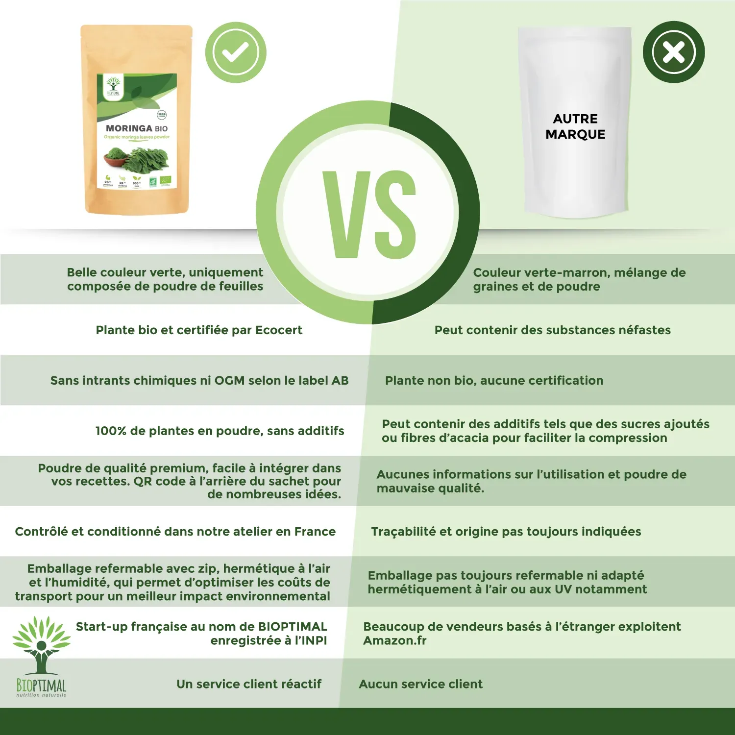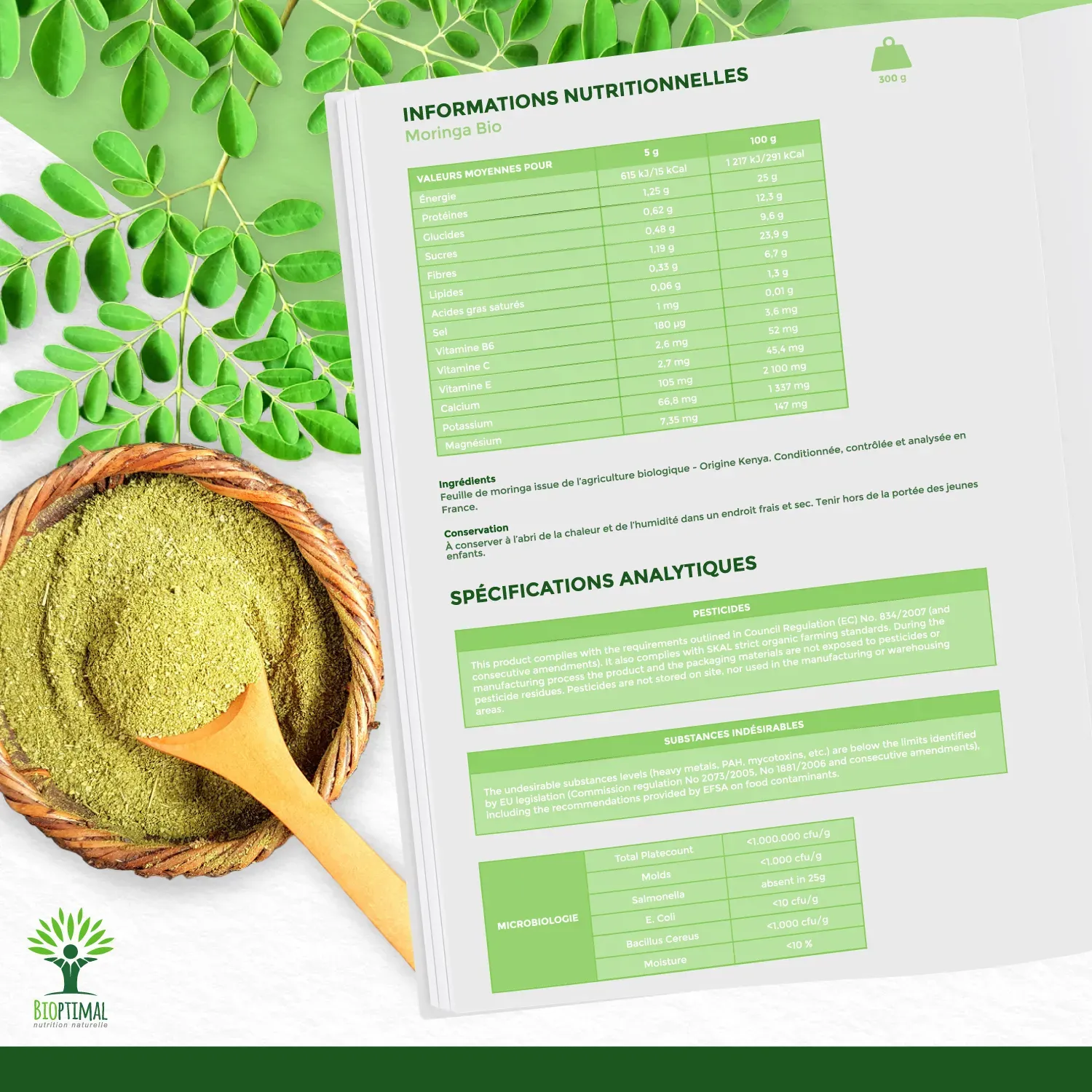 ⭐🔍 QUALITÉ PREMIUM + SECURITÉ : Nous avons sélectionné une poudre pure de moringa, d’une excellente qualité nutritionnelle et gustative, que nous conditionnons en sachets hermétiques afin de conserver tous les nutriments. Cultivé au Kenya, notre moringa provient d’une production durable. Garanti sans additifs, ni métaux lourds, ni ogm, ni pesticides, ni gluten, ni maltraitance animale, il est contrôlé dans notre atelier familial en France et certifiée agriculture biologique.