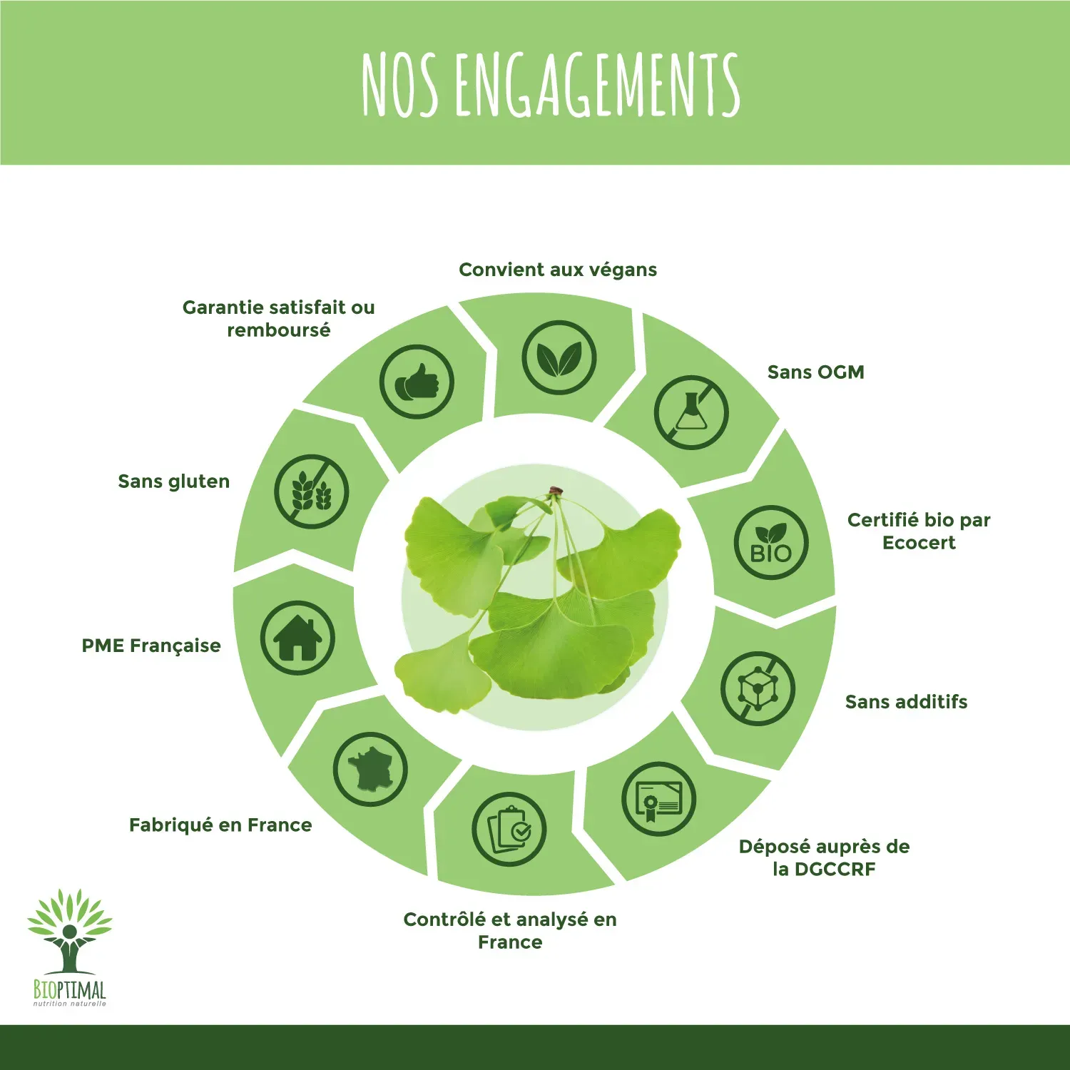 ⭐🔍 QUALITÉ FRANÇAISE = SECURITÉ : Nous fabriquons nos compléments alimentaires en France, nous avons fait le choix d’encapsuler notre ginkgo biloba bio en gélules végétales et non en comprimés pour ne pas intégrer de substances controversées tel que le talc, le stéarate ou carbonate de magnésium. Nos produits sont garantis sans additifs, ni agent de chrarge, ni ogm, ni pesticides, ni gluten, ils sont contrôlés en laboratoire en France et certifiés agriculture biologique, HACCP + et Afnor.