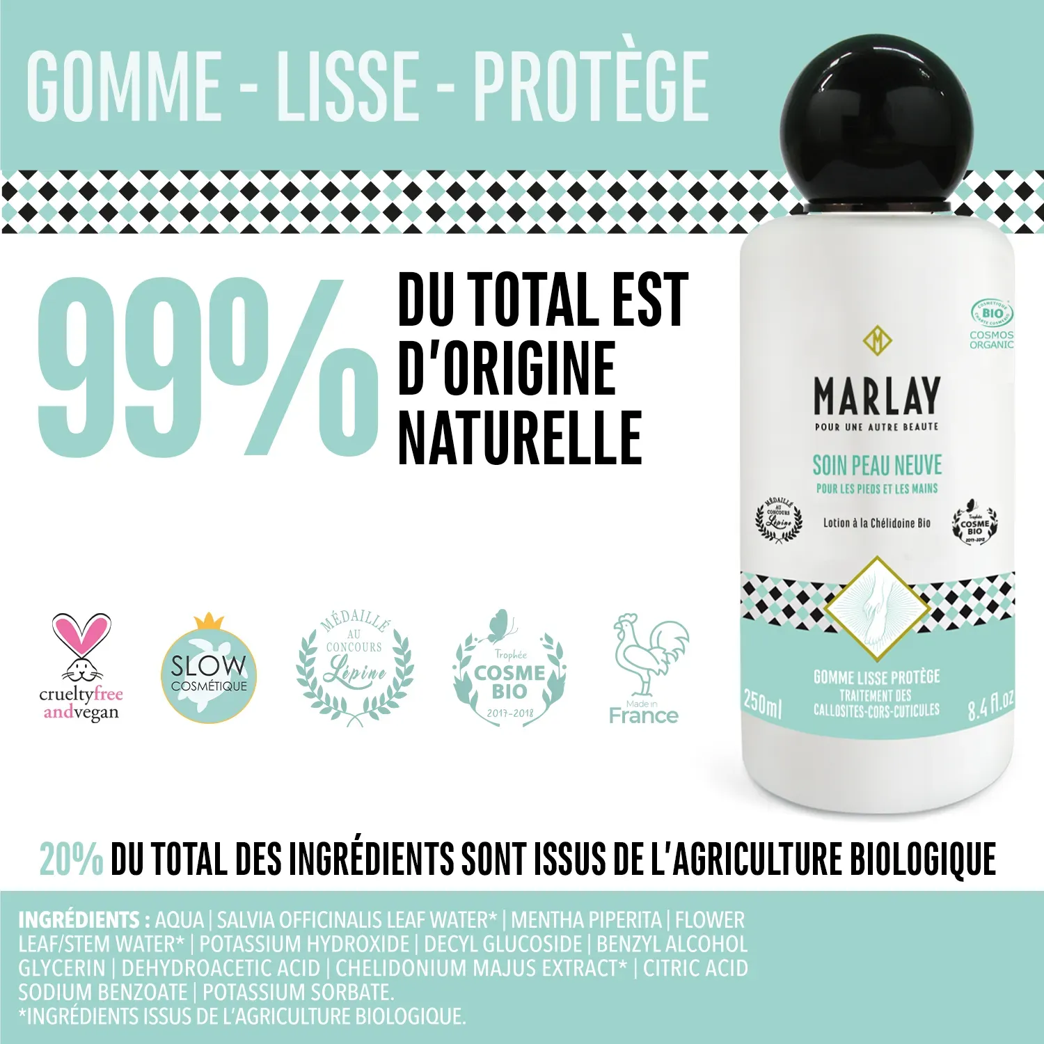 Le Soin Peau Neuve Marlay à la Chélidoine permet d’éviter les dégâts causés par la râpe, la pierre-ponce et le scalpel qui donnent instantanément l’illusion d’un beau pied mais aggravent le problème au long cours en créant des couches de peaux mortes plus dures et plus épaisses.