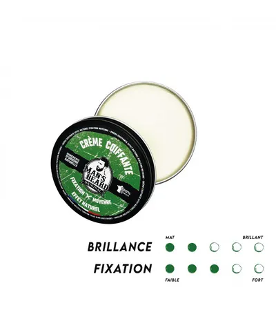 La Crème Naturelle Fixation Moyenne, fabriquée en France à partir d’ingrédients naturels, hydrate, offre un effet naturel et permet de remodeler votre coiffure toute la journée.