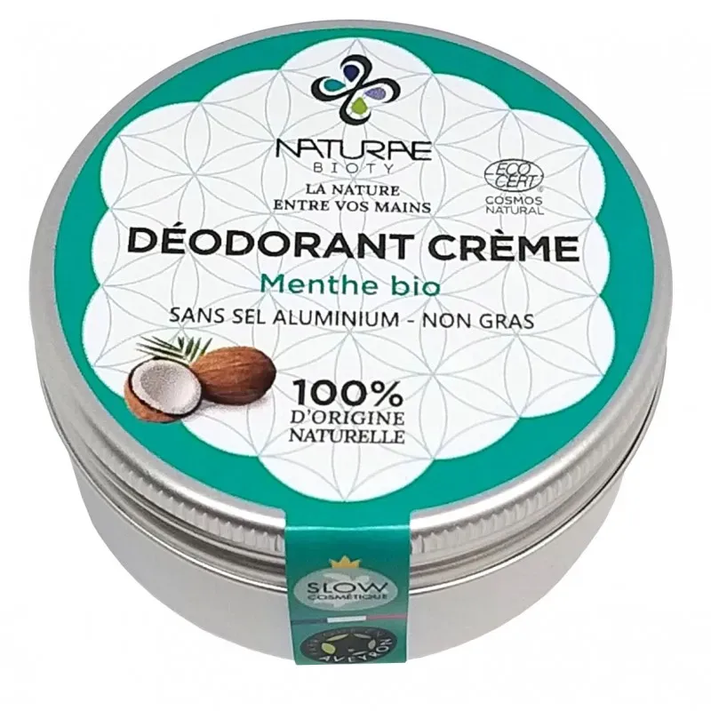 ▶ Les huiles essentielles de menthe bio et de tea tree bio sont tonifiante, rafraîchissante, et purifiante: idéales pour des aisselles sans odeurs.