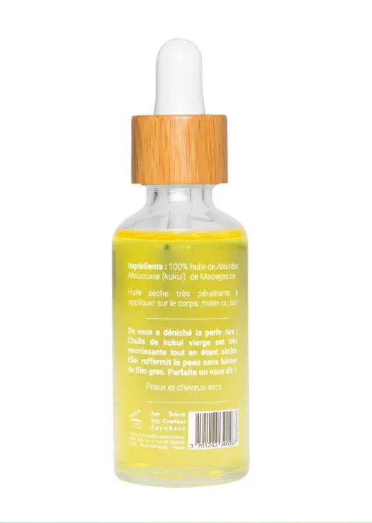 Huile de kukui pure, vierge, de première presse à froid. Flacon de 50ml.