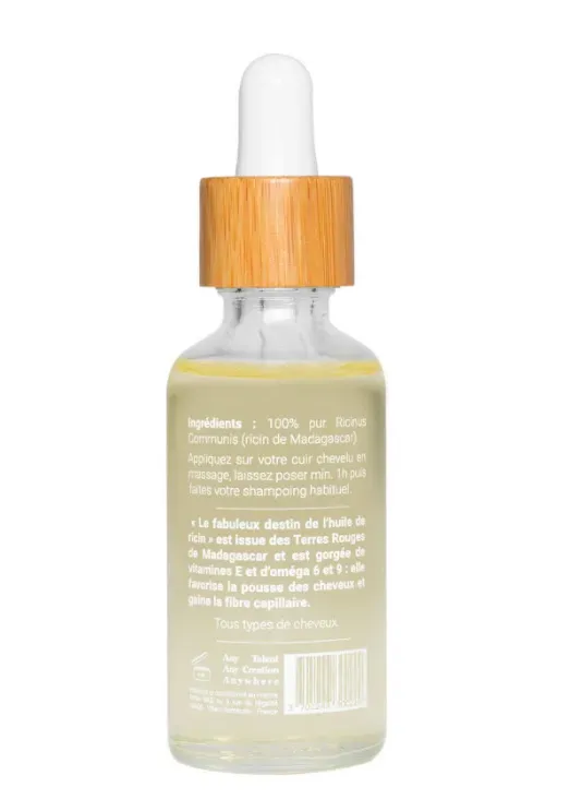 « Le fabuleux destin de l’huile de ricin » favorise la pousse des cheveux, gaine la fibre capillaire pour les rendre plus forts et plus épais. Notre huile de ricin pure est issue des Terres Rouges de Madagascar : gorgée de vitamines E et d’oméga 6 et 9, naturellement très concentrée en acide ricinoléïque, elle fortifie vos cheveux, cils et ongles.