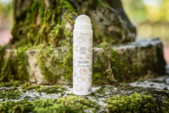 Le gommage visage est composé de poudre de coque de noisette pour une exfoliation mécanique en douceur. L’hydrolat de thé vert ajoute un effet frais.