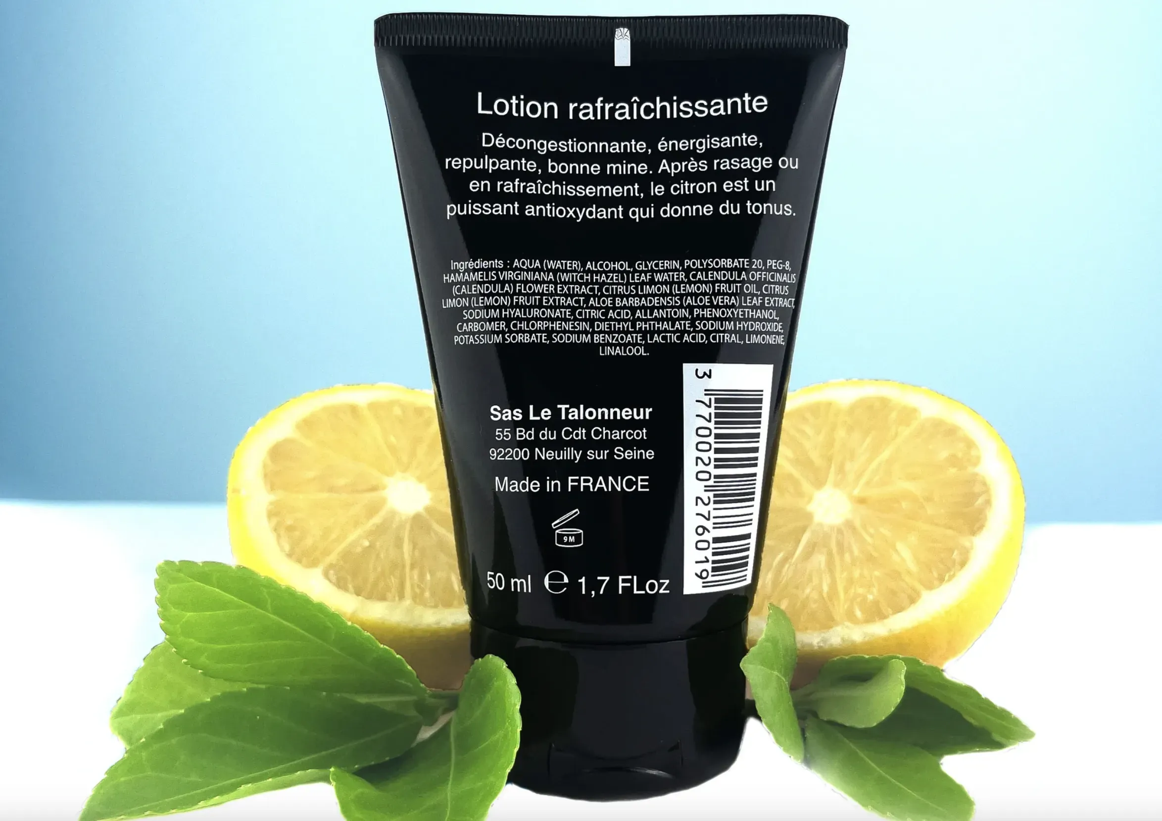 La Lotion Fraîche Citron Le Talonneur #apaise, #hydrate et rafraîchit le #visage et le cou après le rasage ou à tout moment de la journée.