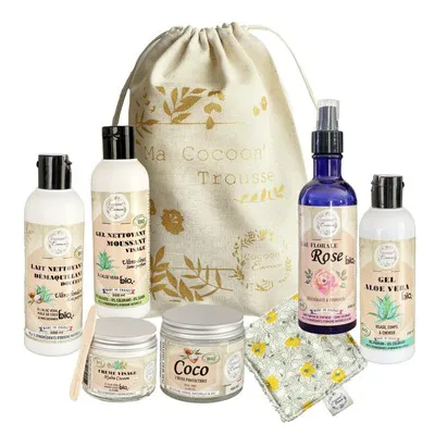 Dans son joli pochon tissu éco-responsable, notre Cocoon’Trousse Routine Peaux Normales vous offre vos soins essentiels de beauté Bio et naturels pour nettoyer, nourrir, hydrater et protèger votre peau normale au quotidien.