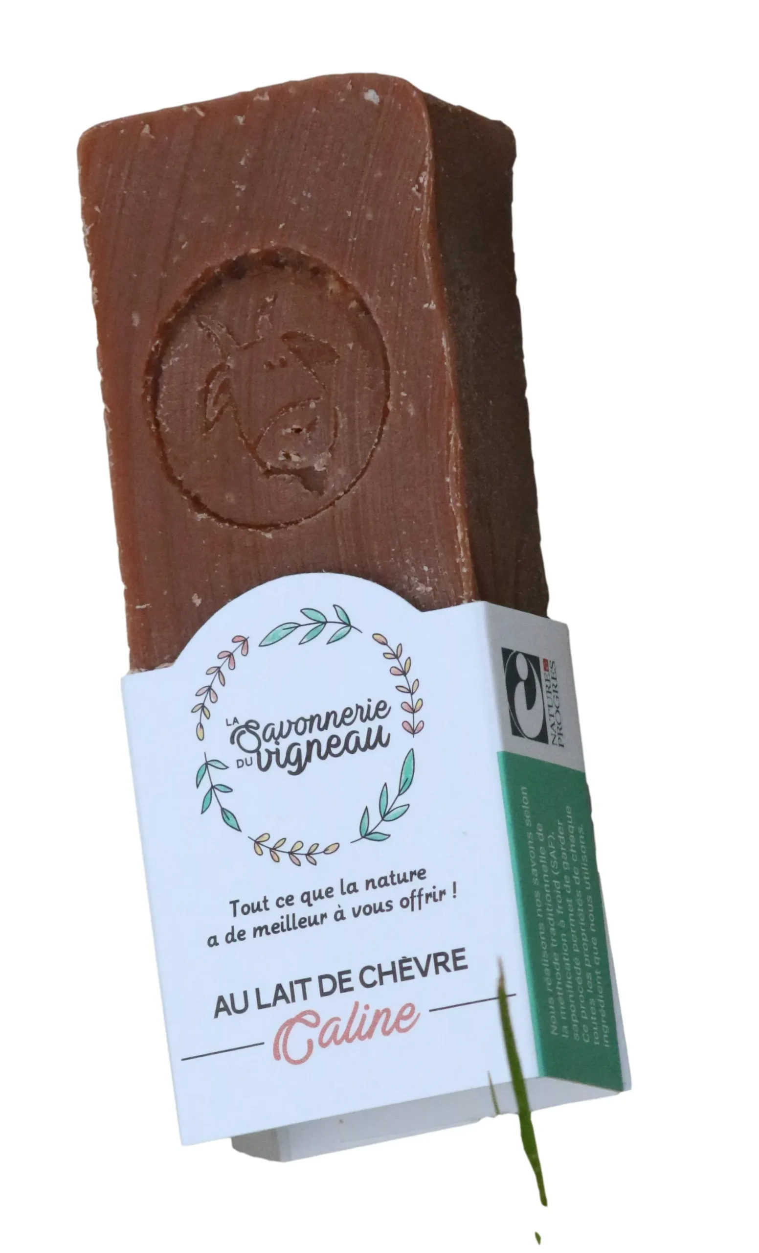 Savon au lait de chèvres est coloré à l’argile rouge composé uniquement de produits BIO : beurre de karité, de coco, ainsi que des huiles de colza et de tournesol vendéennes.
