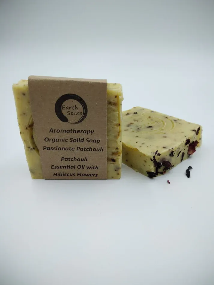 Les savons Earth Sense Organics sont entièrement fabriqués à la main à partir des meilleures bases d’huile que nous avons trouvées. Chaque savon Earth Sense Organics contient un minimum de 72 % d’huiles biologiques pressées à froid. Notre mélange de base contient de l’huile de noix de coco extra vierge biologique du Sri Lanka et de l’huile d’olive extra vierge biologique de Catalogne. Il s’agit d’un mélange à 72 % qui aide non seulement à nettoyer la peau en profondeur, mais nourrit et protège également la peau grâce aux ingrédients naturels contenus dans le mélange. Patchouli et hibiscus.