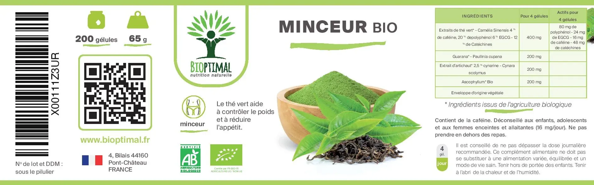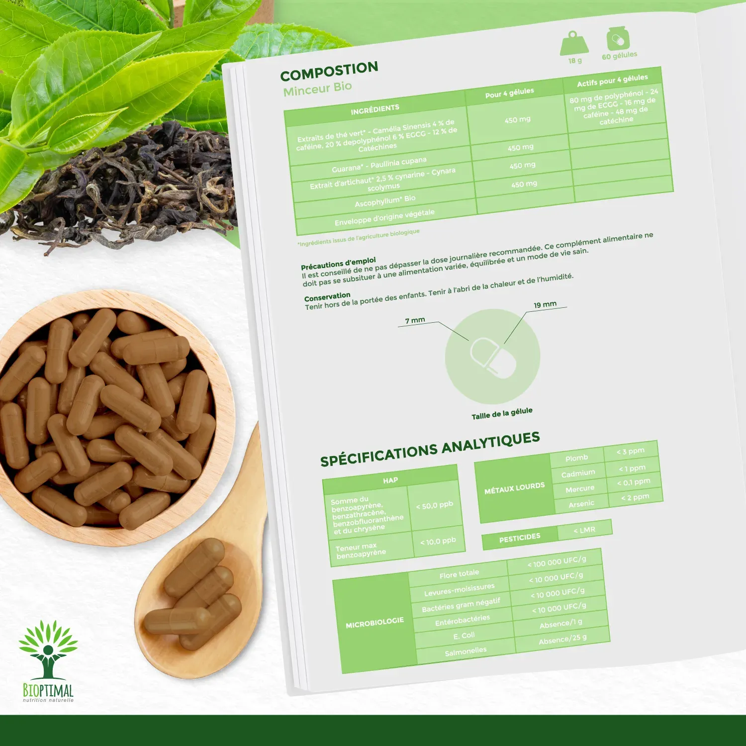 Thé vert bio, Guarana bio, Artichaut bio, Ascophyllum bio, gélule végétale.