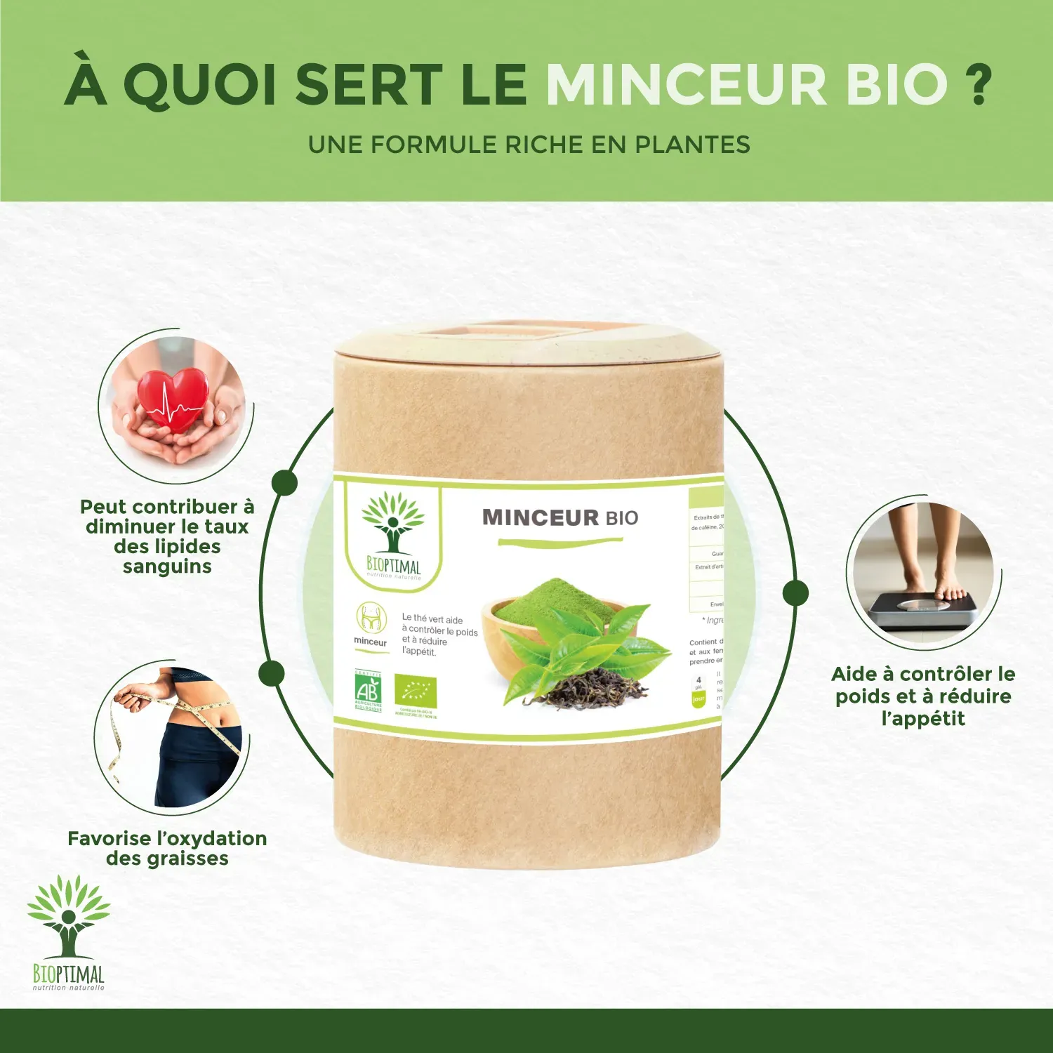 Bienfaits / Propriétés : Notre formule minceur à un effet naturel brûleur de graisse avec la guarana (caféine), diminue la rétention d’eau avec le thé vert, favorise l’absorption des nutriments grâce à l’artichaut et limite le stockage des graisses avec l’ascophyllum.